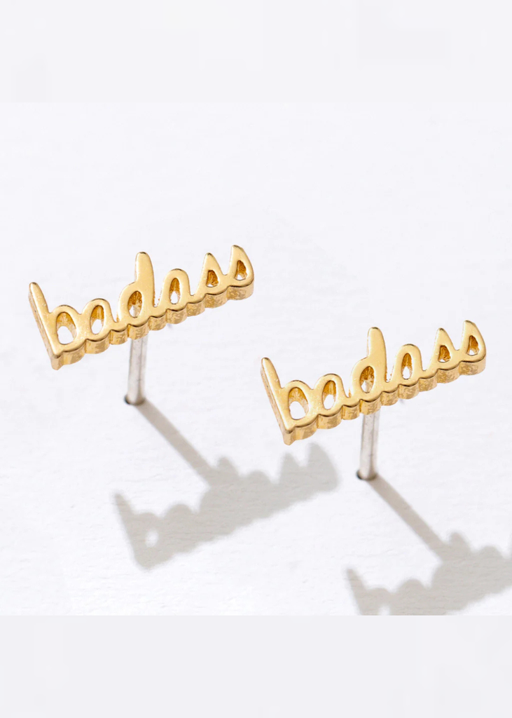 For the woman who knows exactly who she is. These delicate script studs carry a powerful message in the most feminine whisper—a reminder that strength and grace aren't mutually exclusive. Hand-crafted with a flowing script that's equal parts elegant and empowering, these earrings are your daily dose of confidence.